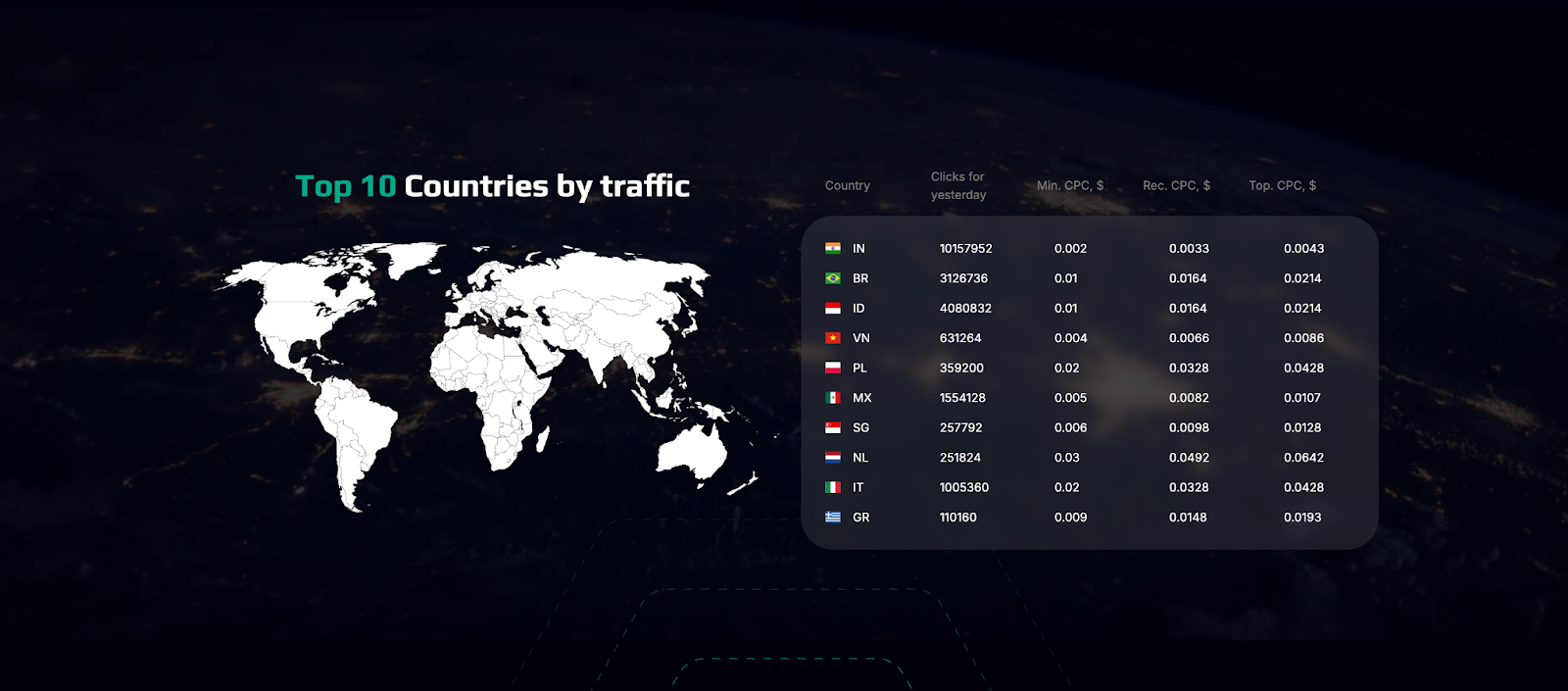 EpicAds работает по всему миру (WW), что позволяет масштабировать связки на любые типы Tier-1, 2 и 3 стран.