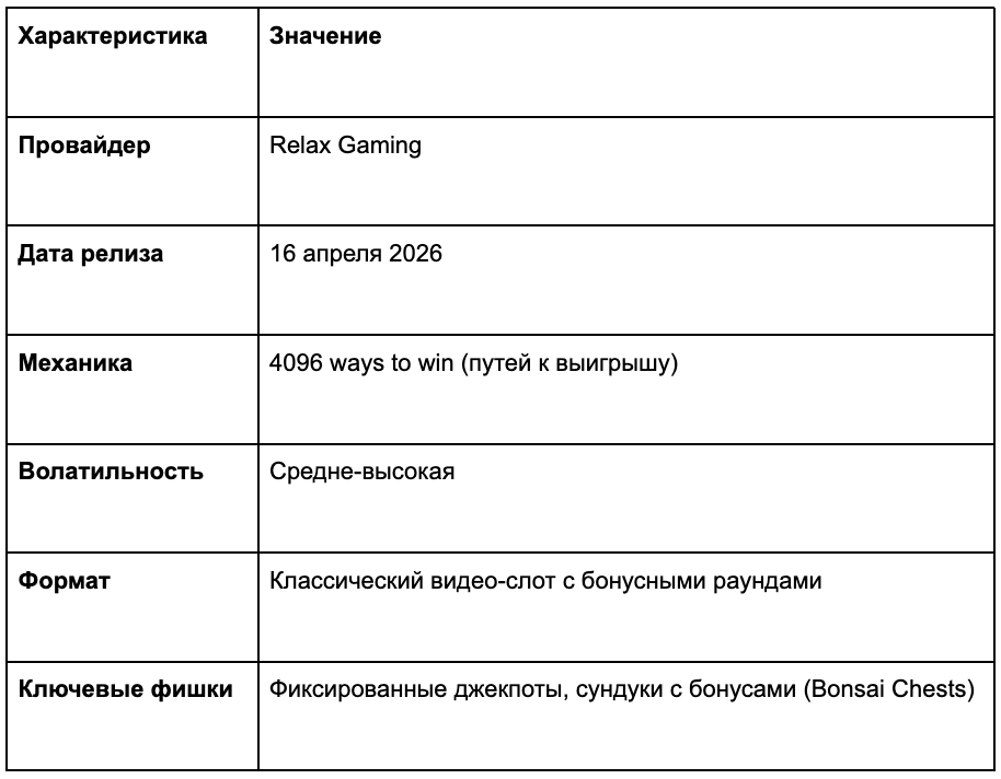 Индустрия онлайн-гемблинга продолжает уверенный дрейф в сторону упрощения механик и максимального фокуса на удержании игрока (retention). Пользователи устают от бесконечных «пустых» спинов в ожидании чуда. Ответом на этот запрос стал свежий релиз от провайдера Relax Gaming — Bonsai Dragon Blitz, увидевший свет 16 апреля 2026 года.
