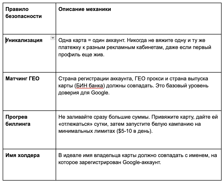 Выжженные БИНы (BIN). Многие арбитражники используют одни и те же сервисы массового выпуска виртуальных карт (VCC). Google видит, что с определенного банковского идентификатора (первые 6 цифр карты) массово идут заливы на серые офферы с последующими банами. В итоге под санкции попадает весь БИН.