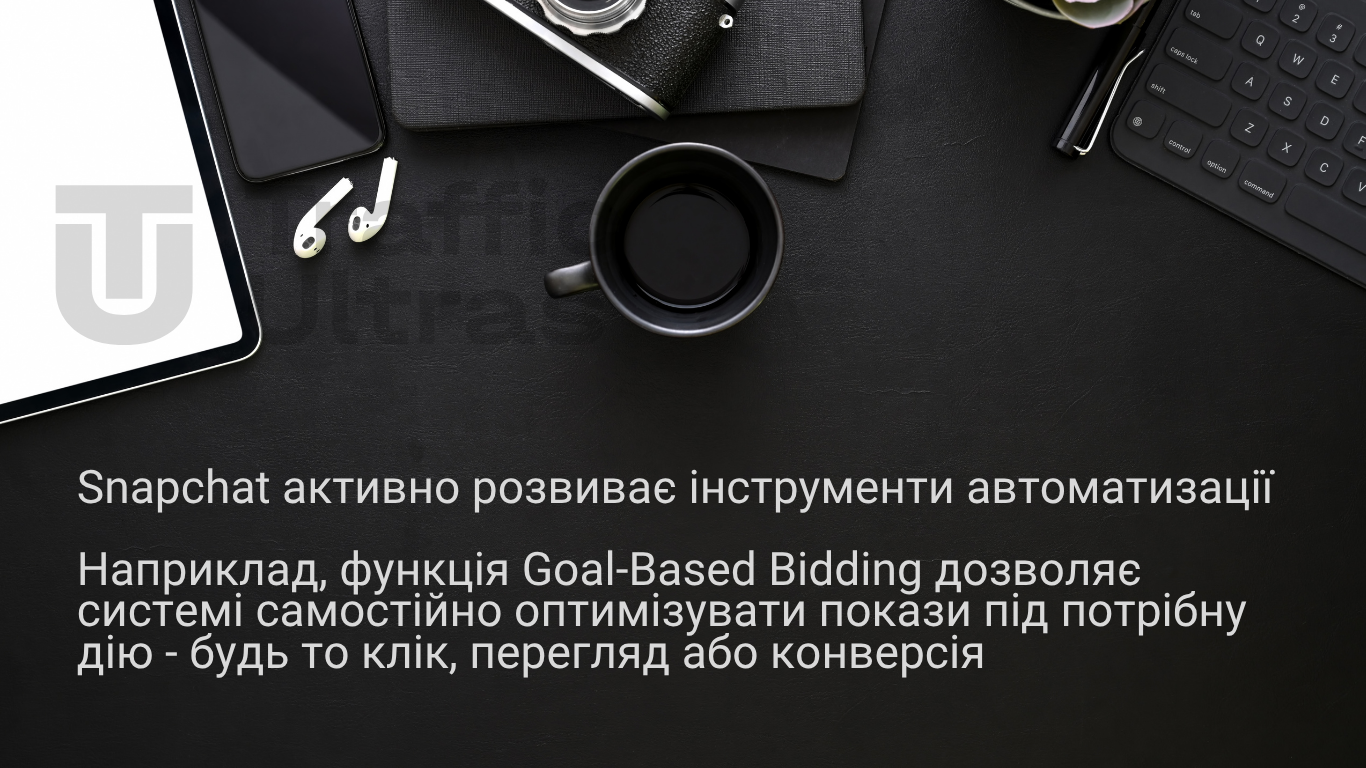 Додатково варто враховувати, що Snapchat активно розвиває інструменти автоматизації. Наприклад, функція Goal-Based Bidding дозволяє системі самостійно оптимізувати покази під потрібну дію - будь то клік, перегляд або конверсія. Це особливо корисно при масштабуванні.
