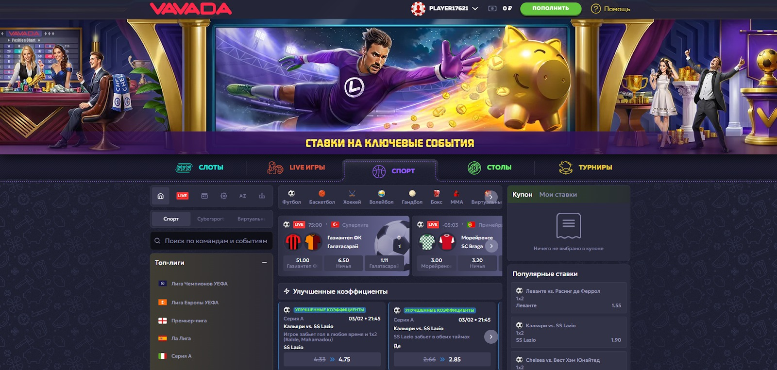 - Live-дилери — ігри від Evolution Gaming, Pragmatic Play та Playtech.