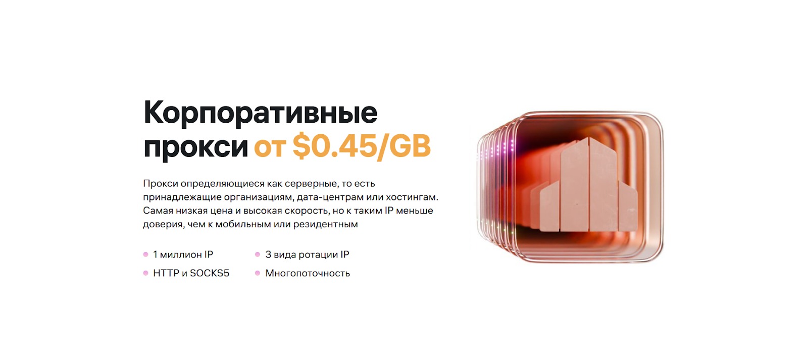 - Корпоративні проксі – від $1.20 за IP на місяць.